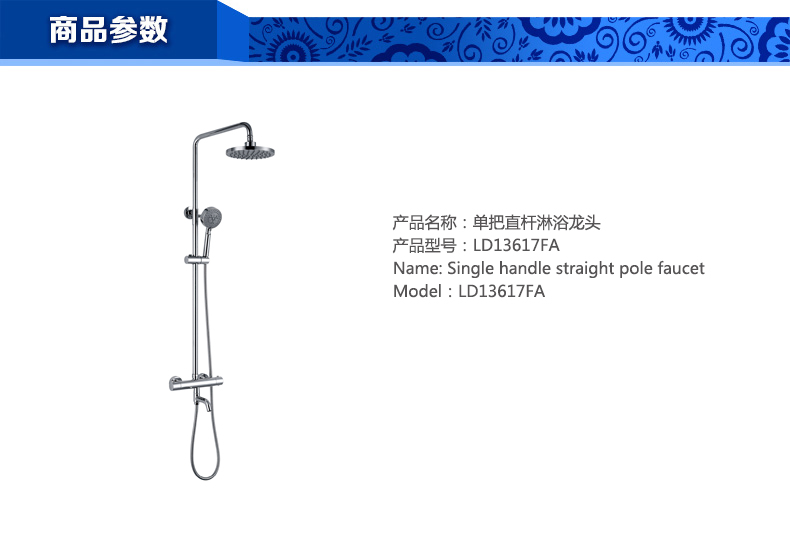 單把直桿淋浴龍頭LD13617FA4只/箱
