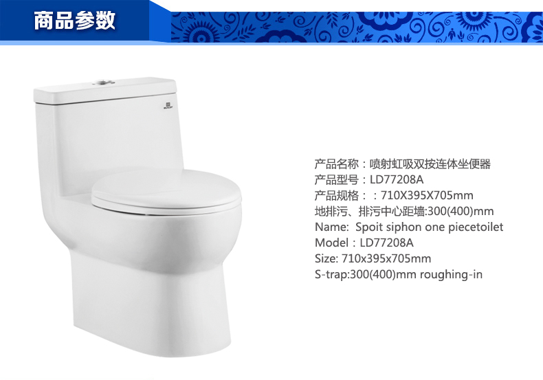 噴射虹吸雙按連體坐便器LD77208A