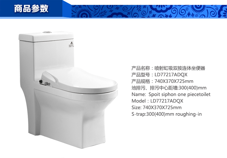 噴射虹吸雙按連體坐便器LD77217ADQX