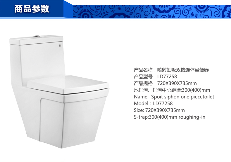 噴射虹吸雙按連體坐便器LD77205P