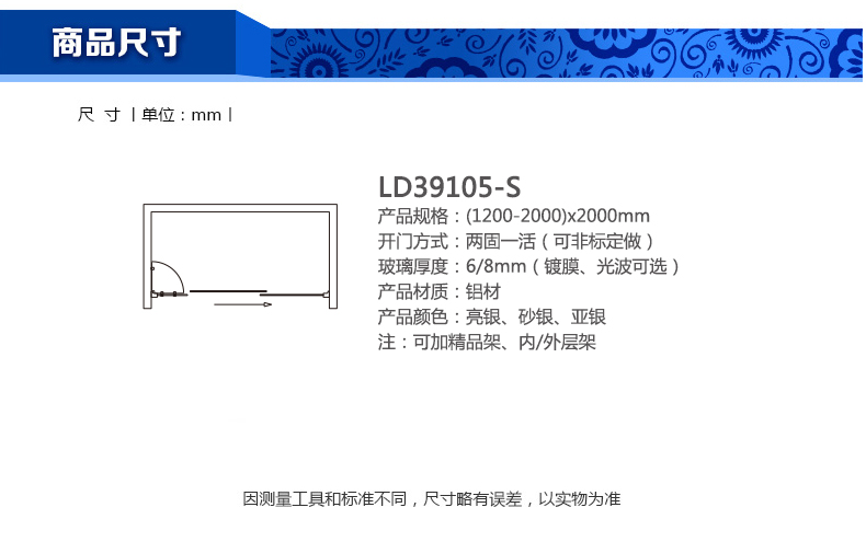 淋浴房LD39105-S(1200-2000)x2000mm 1698/m2