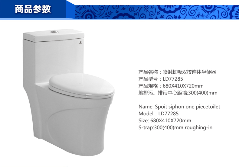 噴射虹吸雙按連體坐便器LD77205P