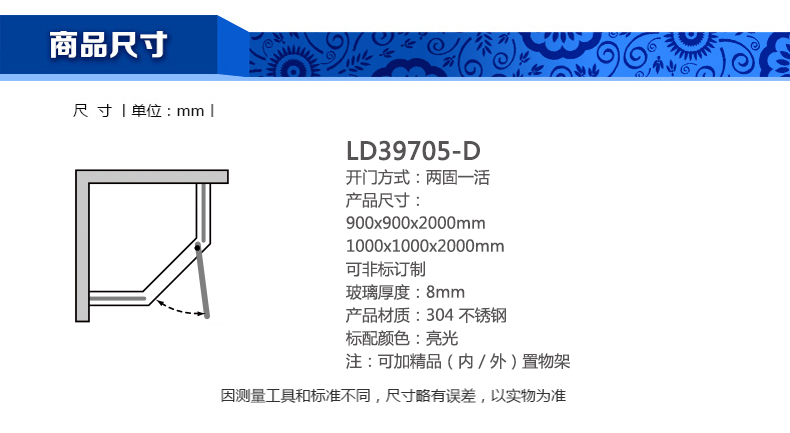 淋浴房LD39705-D900x900x2000mm 1000x1000x2000mm